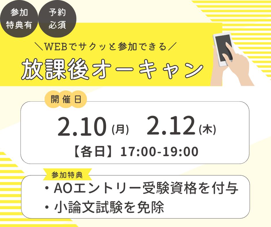 オープンキャンパス 2026.01.30 【WEB限定】放課後オープンキャンパス開催!