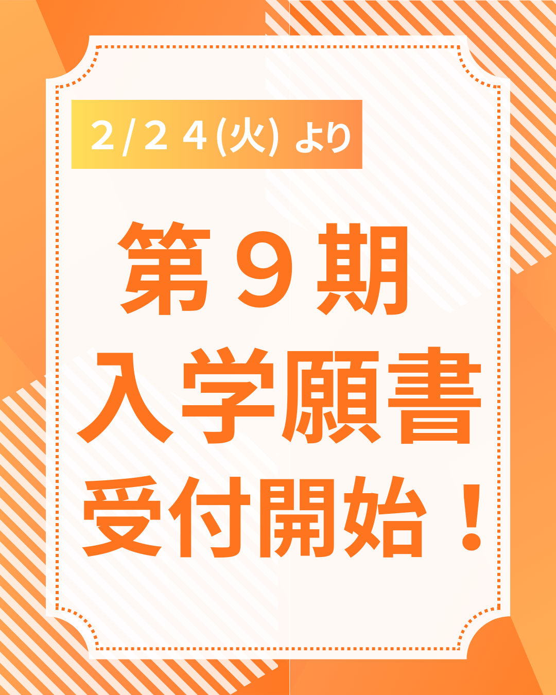 入試情報 2026.02.16 【2/24(火)~第9期入学願書受付開始‼】 -