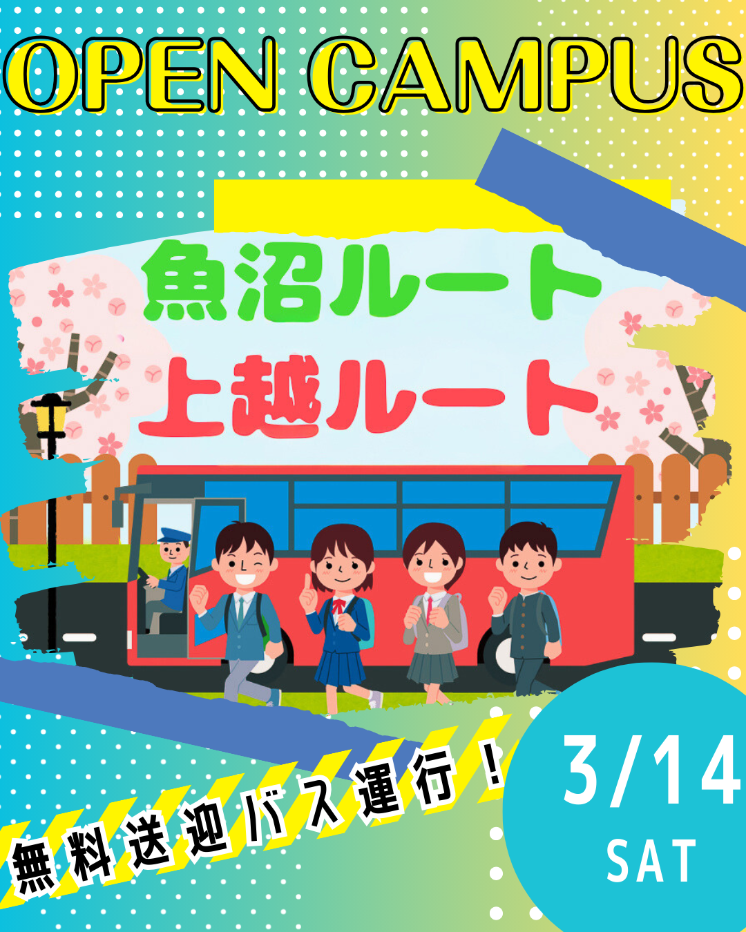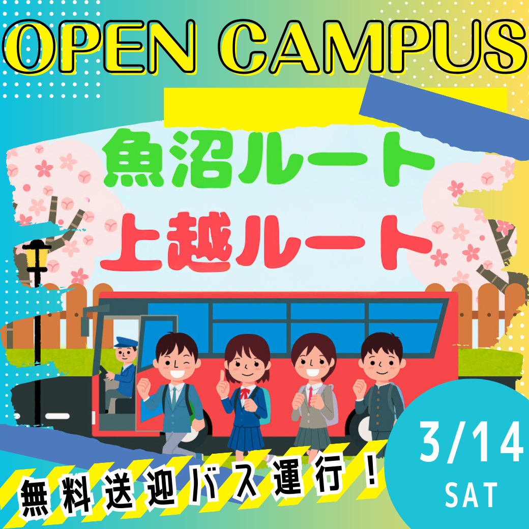 オープンキャンパス 2026.02.16 3/14(土)午後の部を対象に無料送迎バス運行!特別オーキャンのお知らせ -
