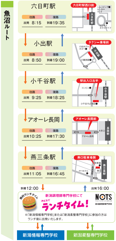 送迎ルートは<上越ルート> <魚沼ルート>の2つ🚌