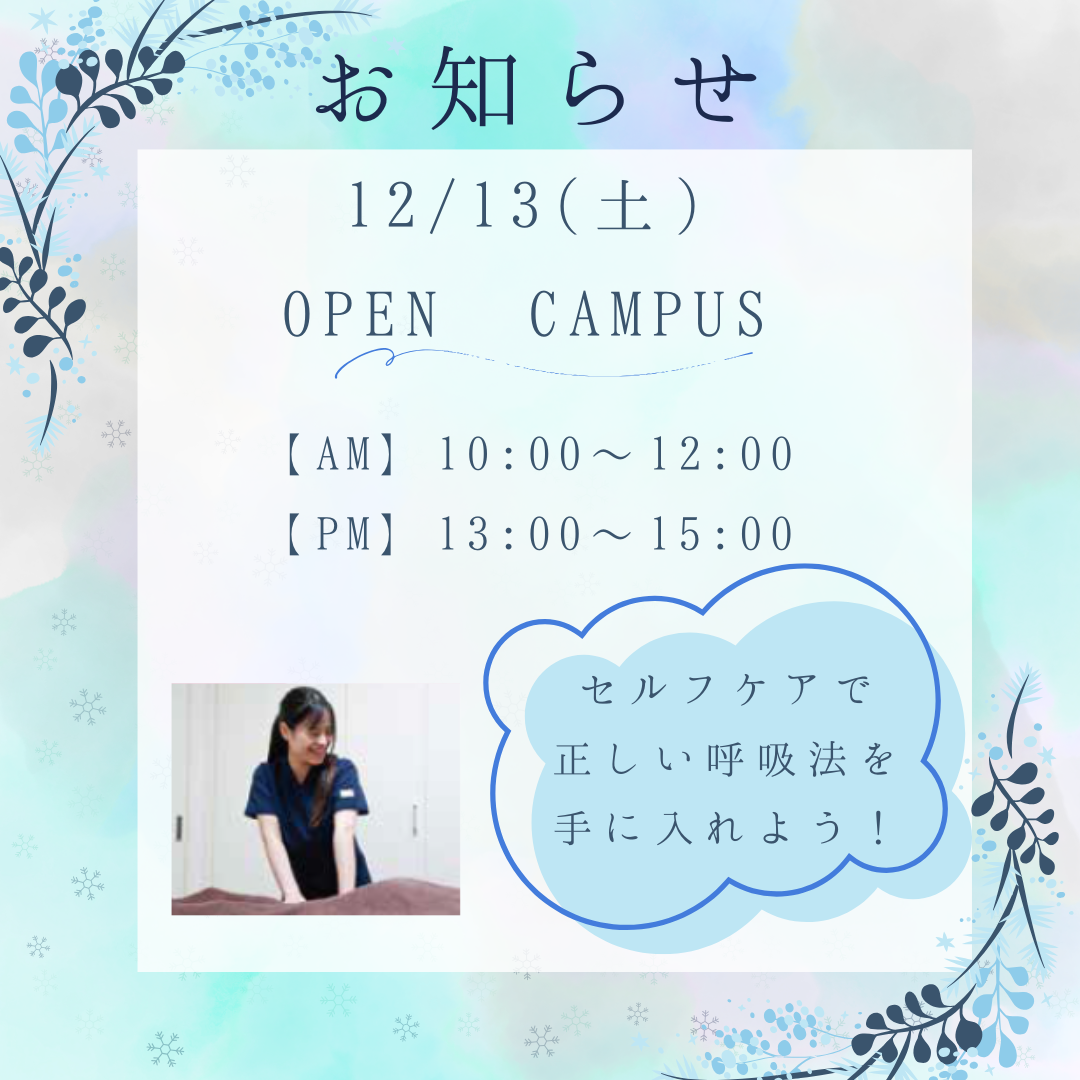 オープンキャンパス 2025.12.01 12/13(土)オープンキャンパスのお知らせ -