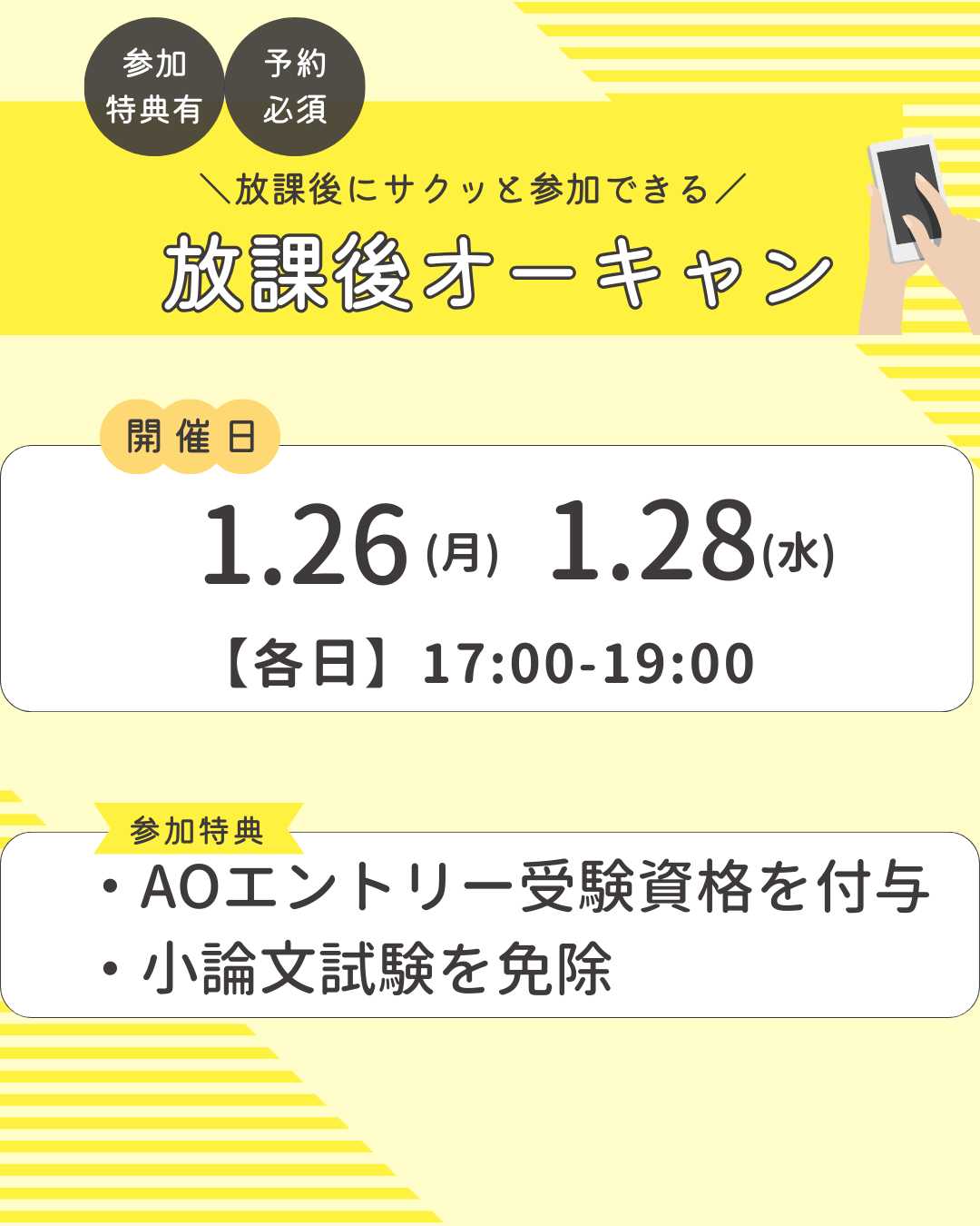午前の部開始10:00 受付時間9:20〜